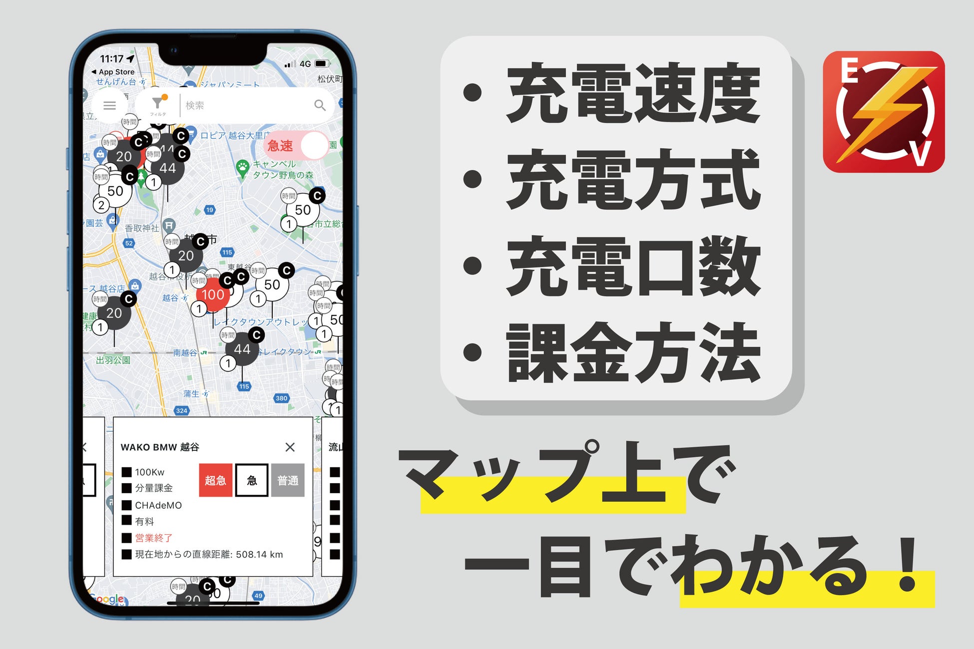 マップ上でEVユーザーの欲しい情報が一目でわかる、EV充電器検索アプリの決定版