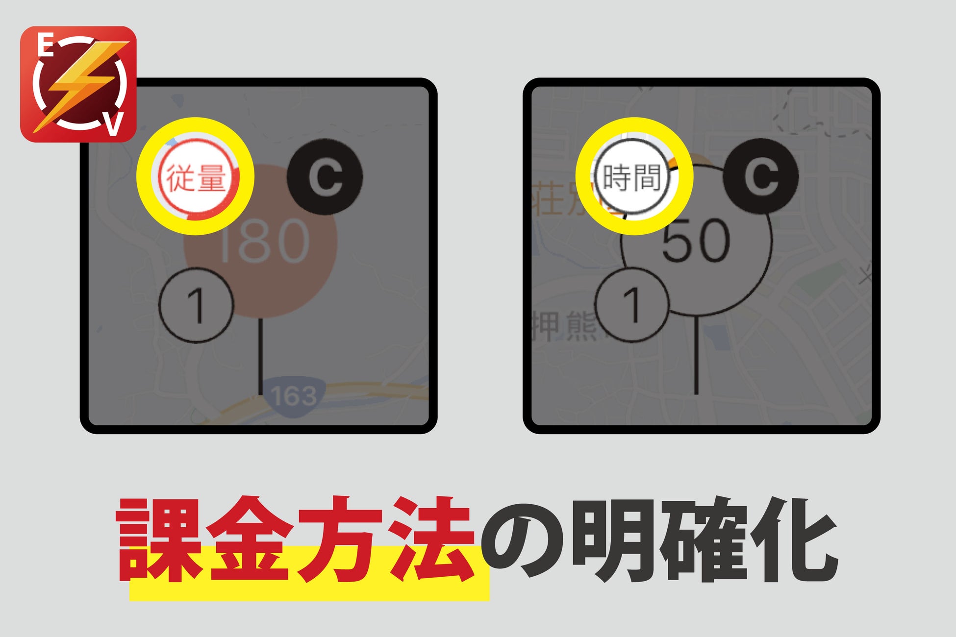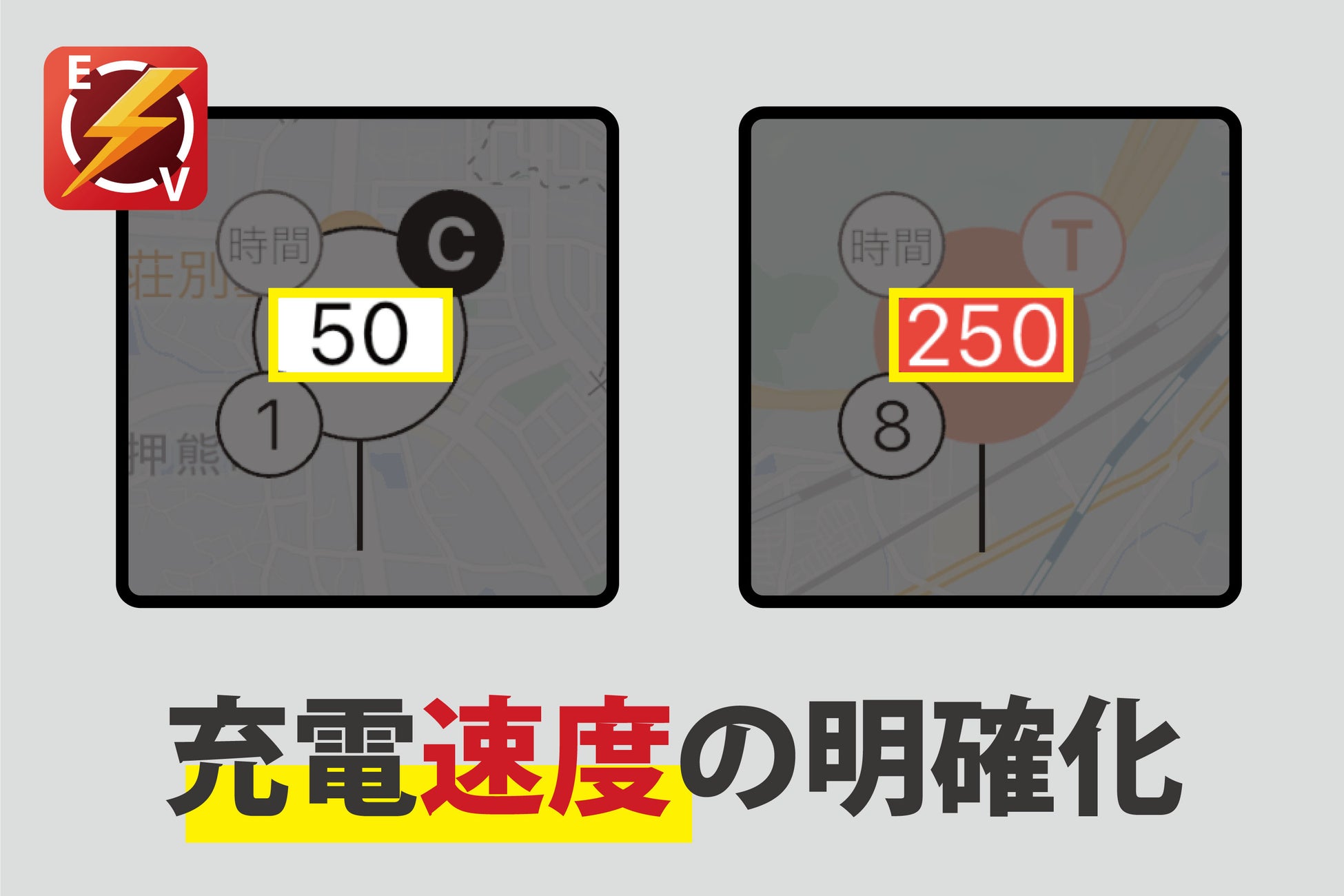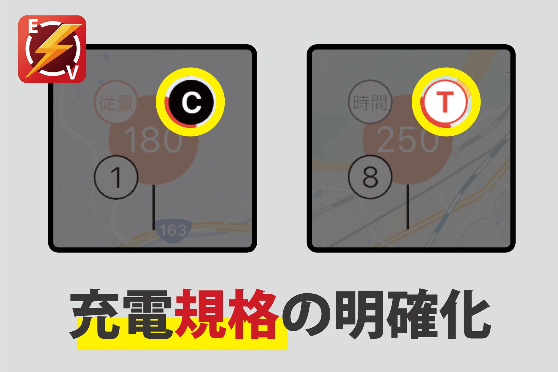 利用用途が違う普通充電器と急速充電器を明確に分けて表示することによって利便性を高めます。